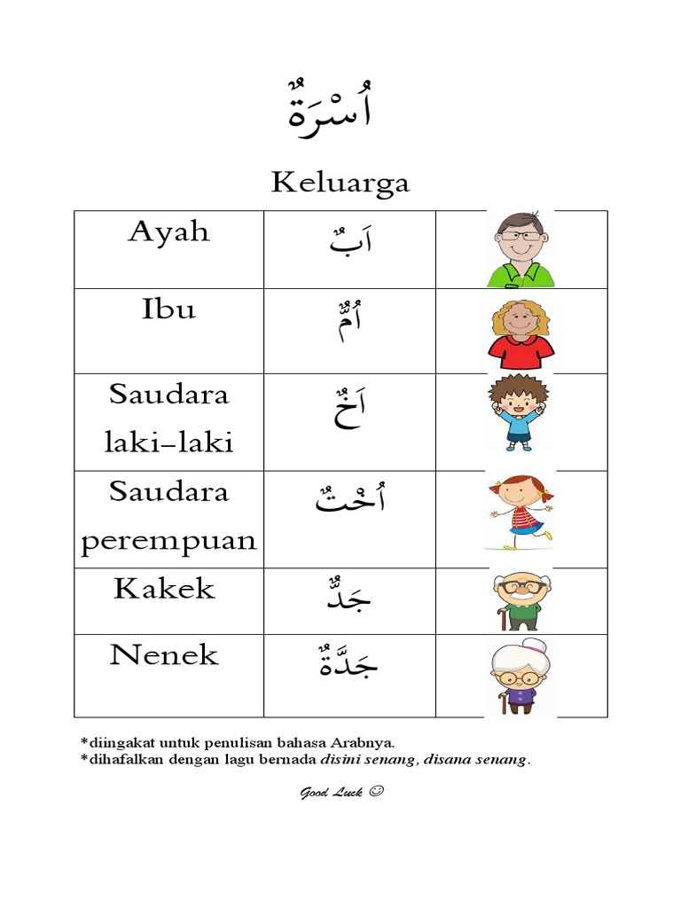 Anggota Keluarga Credit To Ustaz Faiz Nota Bahasa Arab Facebook