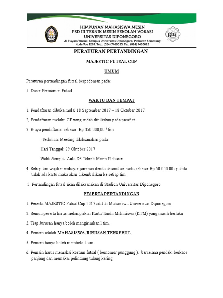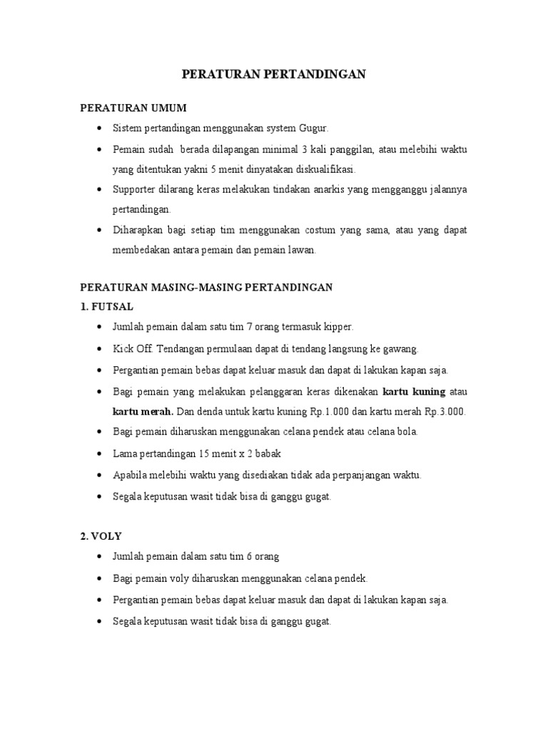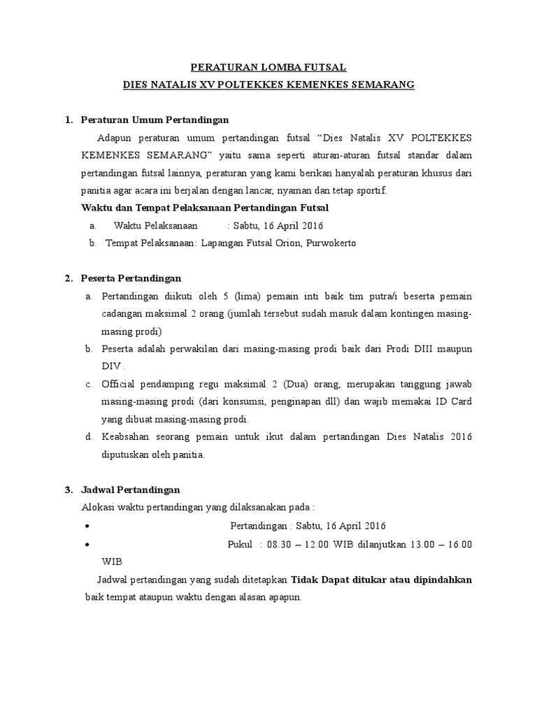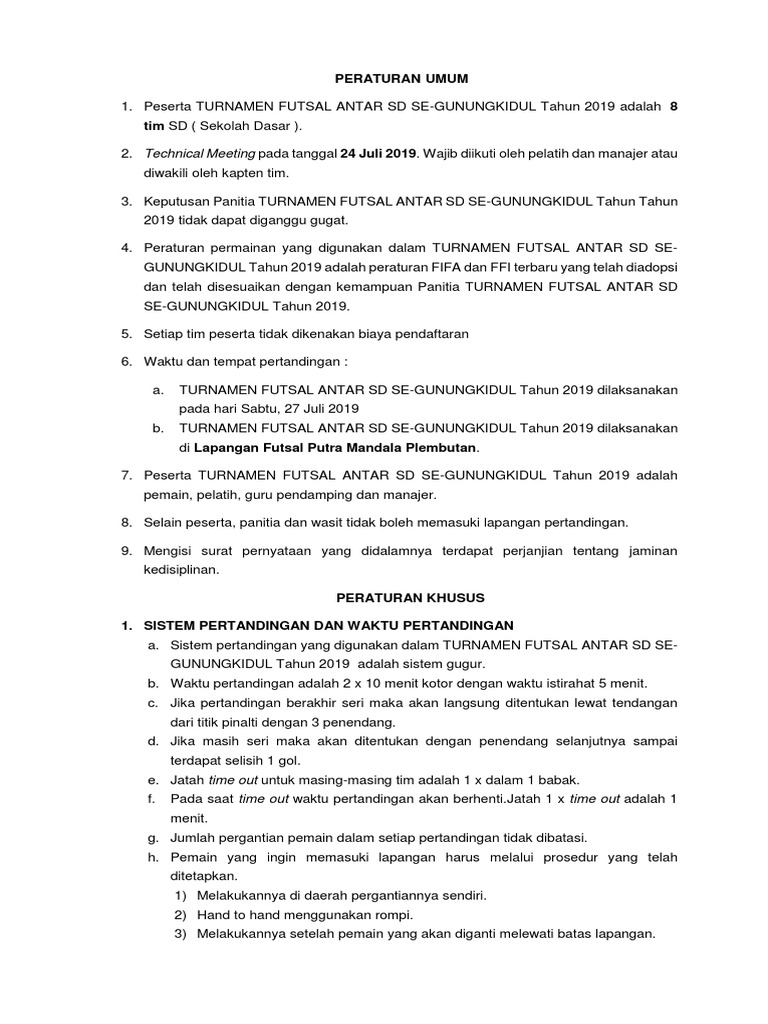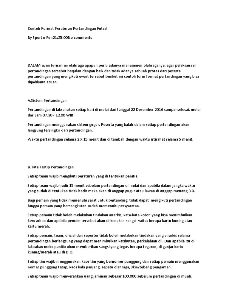 Contoh Format Peraturan Pertandingan Futsal Pdf