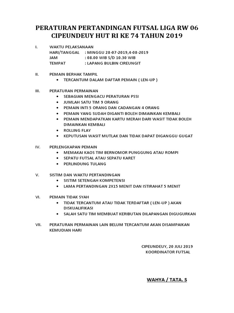 Peraturan Pertandingan Futsal Liga Rw 06 Pdf